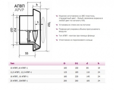 Анемостаты 15АПВП приточно-вытяжные с фланцем. Используются в системах принудительной вентиляции. Возможность плавной регулировки количества пропускаемого воздуха путем вращения диска в центральной части анемостата. Имеют фланец для присоединения.