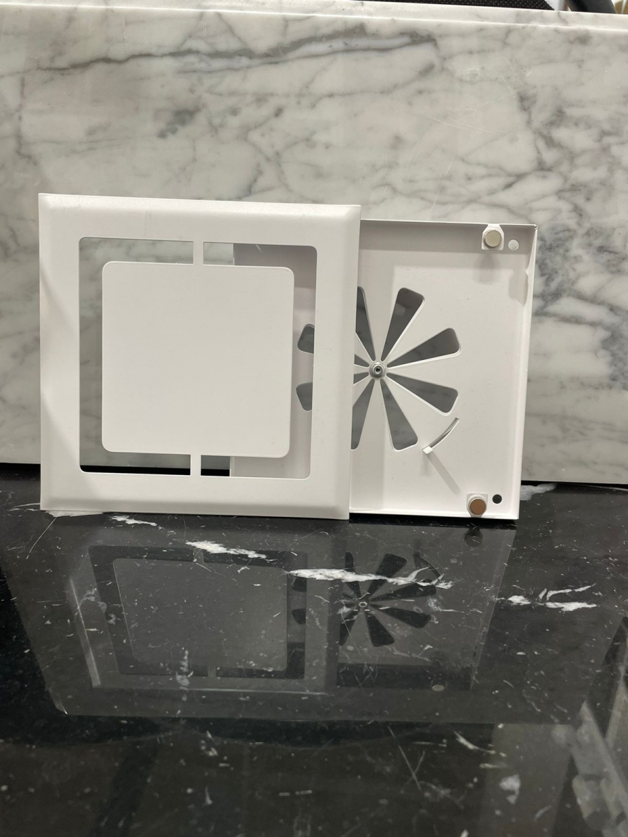 Конструкция продумана до мелочей. Воздух поступает в вент шахту по периметру решетки при том само вентиляционное отверстие не видно совсем. Оно закрывается верхней панелью, при этом не перекрывая доступ воздуха.