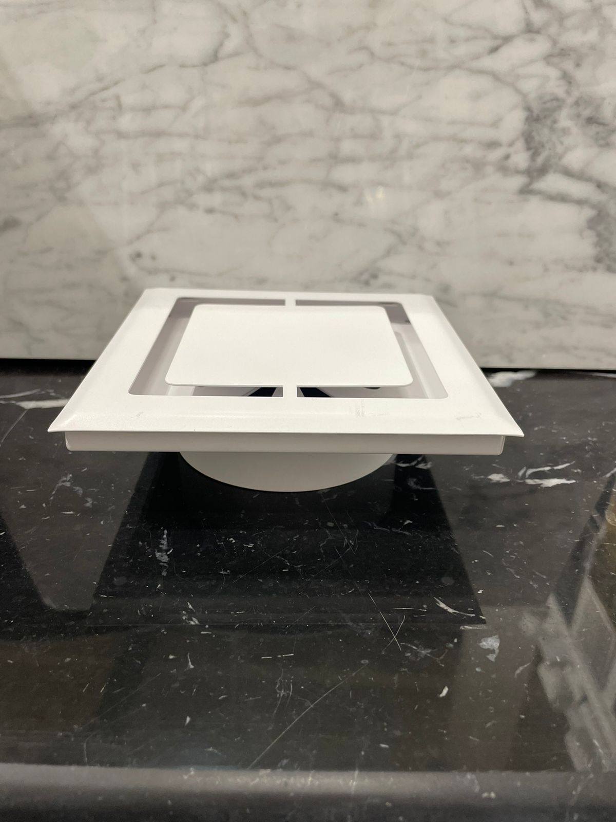 Конструкция продумана до мелочей. Воздух поступает в вент шахту по периметру решетки при том само вентиляционное отверстие не видно совсем. Оно закрывается верхней панелью, при этом не перекрывая доступ воздуха.