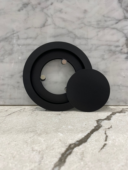 Рамка прикрепляется к стене или полотку при помощи саморезов или клея, а верхняя часть с глухой панелью фиксируется к рамке при помощи неодимовых магнитов.