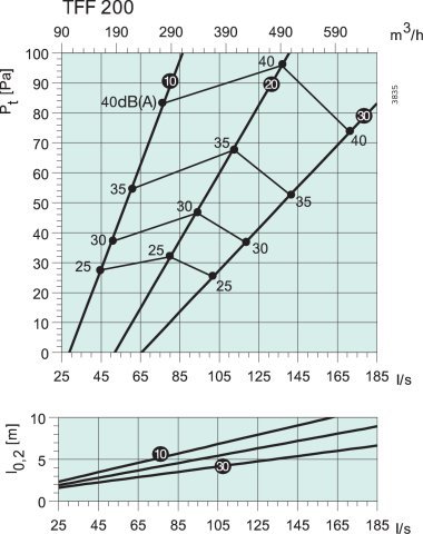 TFF изготовлен из стали и покрыт белой порошковой краской (RAL 9010-80). Поставляется в следующих диаметрах: ø80, ø100, ø125, ø160 и ø200.
