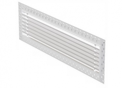 Данная решетка подходит для монтажа на любую поверхность под финишную отделку. Рамка и экран изготовлены из алюминия, опора экрана - из оцинкованной стали. Рама оснащена «полкой» 1,9 мм и рифлеными краями для большей адгезии финишного материала – шпатлевки, цемента. Решетка имеет съемную центральную часть с фиксированным углом наклона ламелей 0°. Она крепится к корпусу прочными металлическими тросиками, легко снимается для очистки и удобного обслуживания.