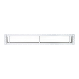 Данная решетка подходит для монтажа на любую поверхность под финишную отделку. Рамка и экран изготовлены из алюминия, опора экрана - из оцинкованной стали. Рама оснащена «полкой» 1,9 мм и рифлеными краями для большей адгезии финишного материала – шпатлевки, цемента. Решетка имеет съемную центральную часть с фиксированным углом наклона ламелей 0°. Она крепится к корпусу прочными металлическими тросиками, легко снимается для очистки и удобного обслуживания.