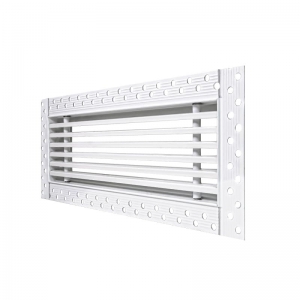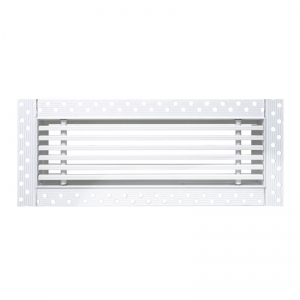 Данная решетка подходит для монтажа на любую поверхность под финишную отделку. Рамка и экран изготовлены из алюминия, опора экрана - из оцинкованной стали. Рама оснащена «полкой» 1,9 мм и рифлеными краями для большей адгезии финишного материала – шпатлевки, цемента. Решетка имеет съемную центральную часть с фиксированным углом наклона ламелей 15°. Она крепится к корпусу прочными металлическими тросиками, легко снимается для очистки и удобного обслуживания.