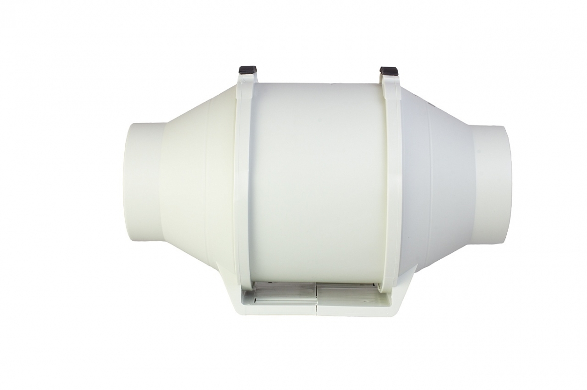 Вентилятор состоит из двух частей: монтажного кронштейна и закрепленного на нем корпуса вентилятора. Корпус вентилятора и патрубки изготовлены из негорючего полипропилена V0, имеют повышенный класс брызгозащиты и обладают диэлектрическими свойствами. Кронштейн выполнен из качественной листовой стали.