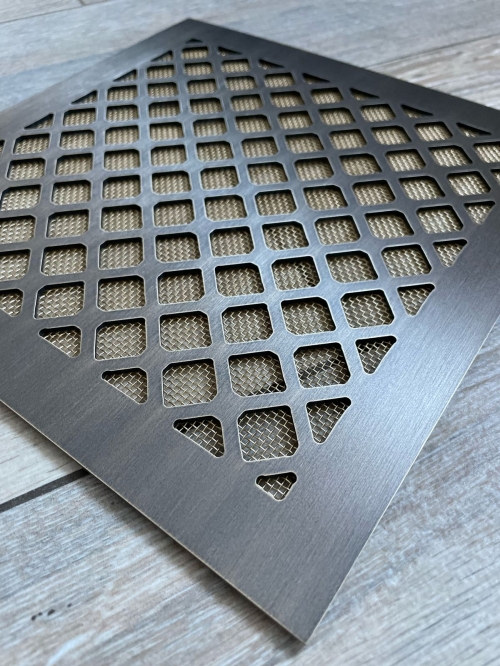 - Эта декоративная вентиляционная решётка может быть изготовлена из различных материалов: алюминий, сталь, латунь, нержавеющая сталь.