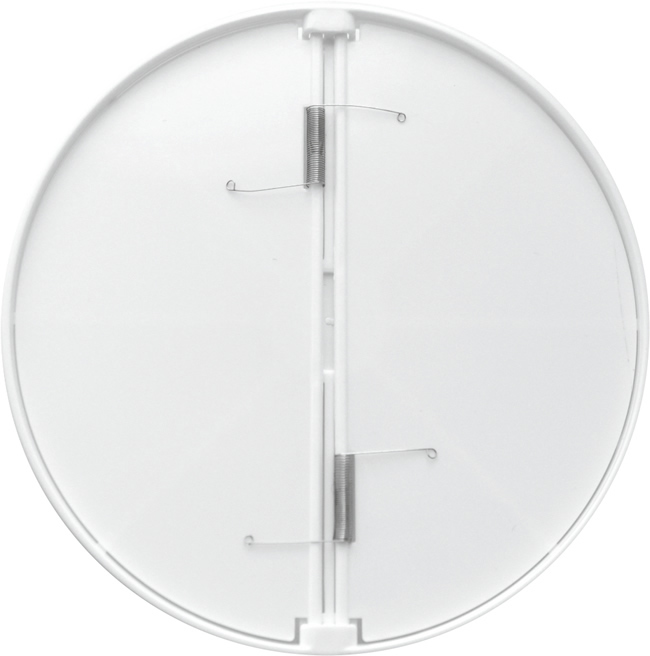 Пружинный механизм обеспечивает полное открытие створок клапана при работе вентилятора и их полное закрытие при возникновении обратной тяги;