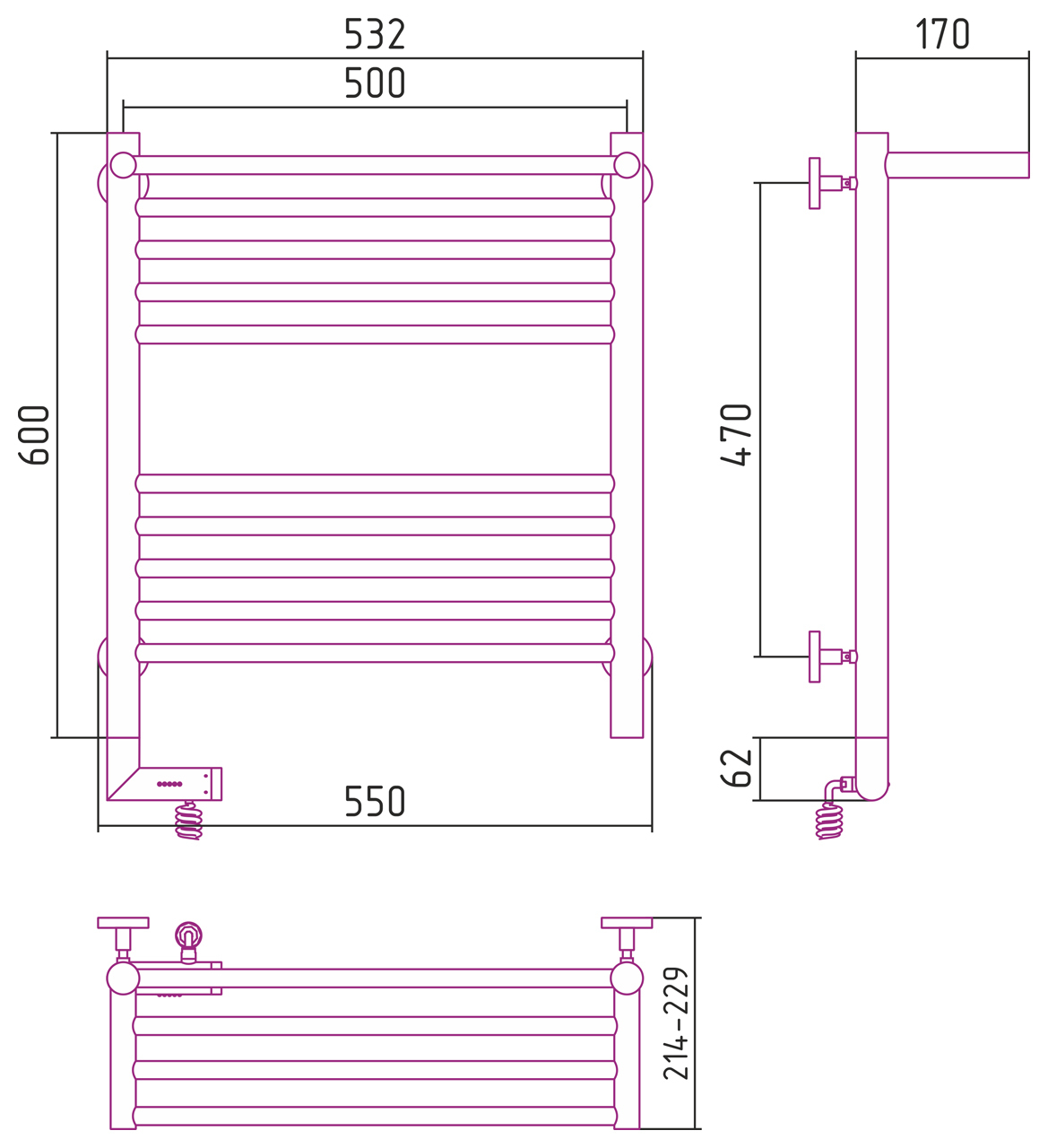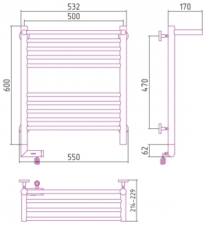 Полотенцесушитель электрический Сунержа Богема 2.0 с полкой 600x500