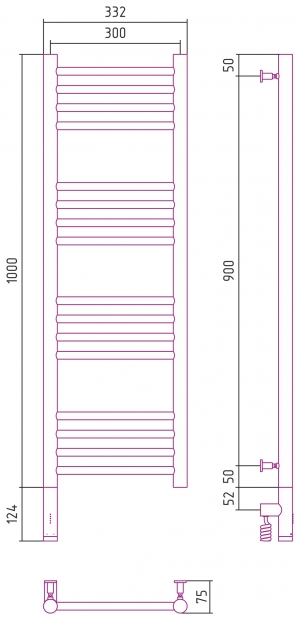 Полотенцесушитель электрический Сунержа Богема 3.0 1000x300
