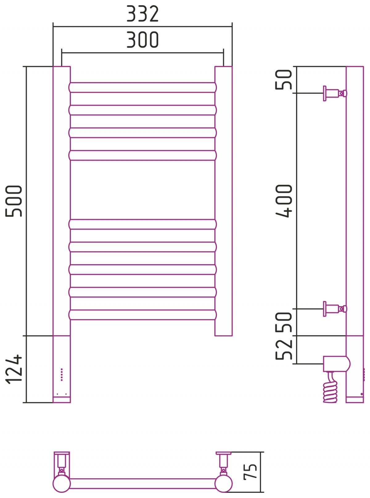 Полотенцесушитель электрический Сунержа Богема 3.0 500x300