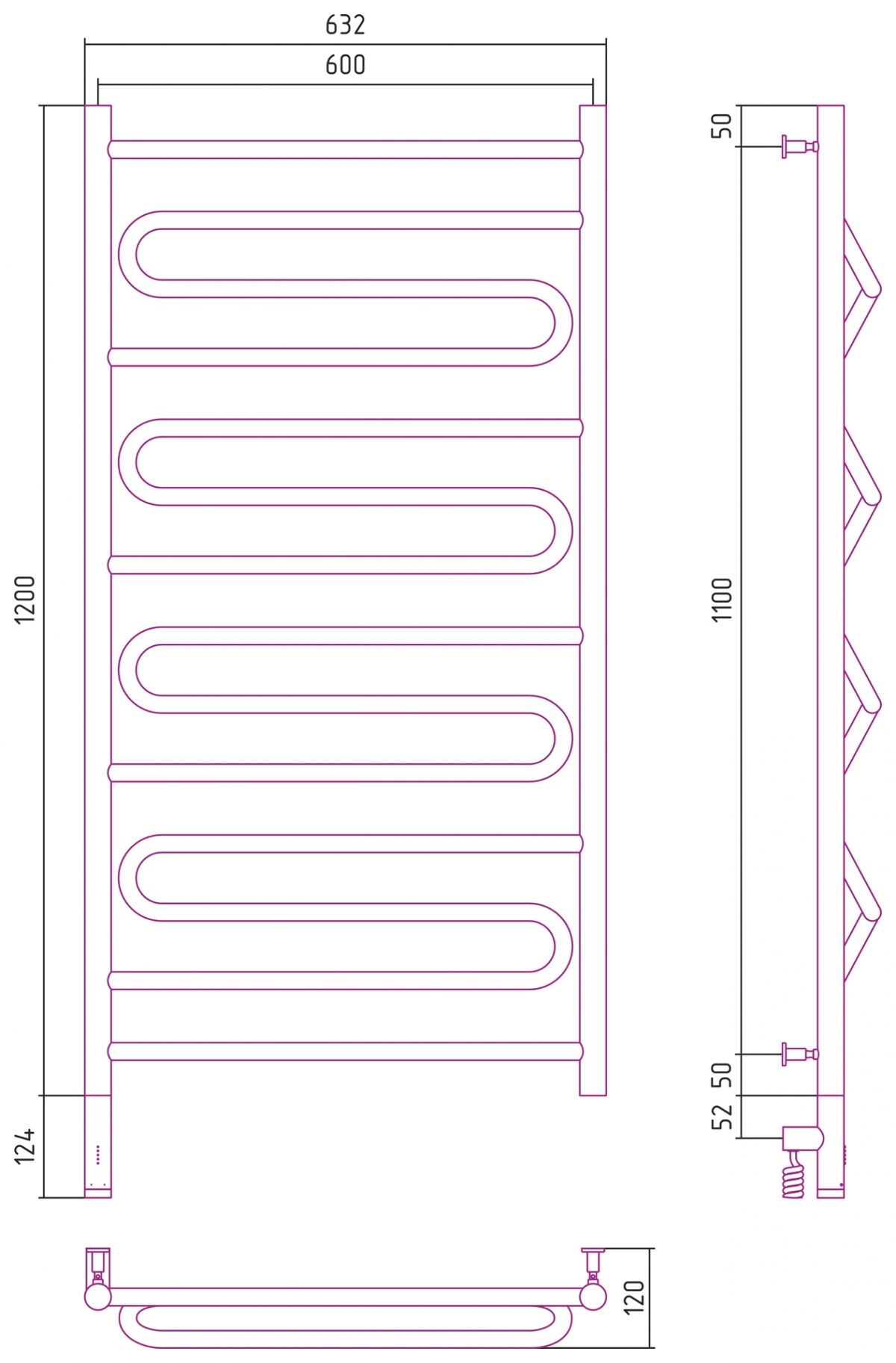 Полотенцесушитель электрический Сунержа Элегия 3.0 1200x600
