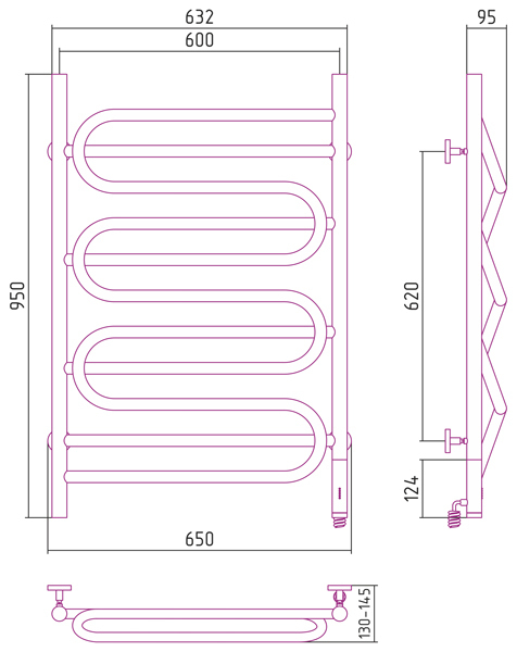 Полотенцесушитель электрический Сунержа Иллюзия 950x600