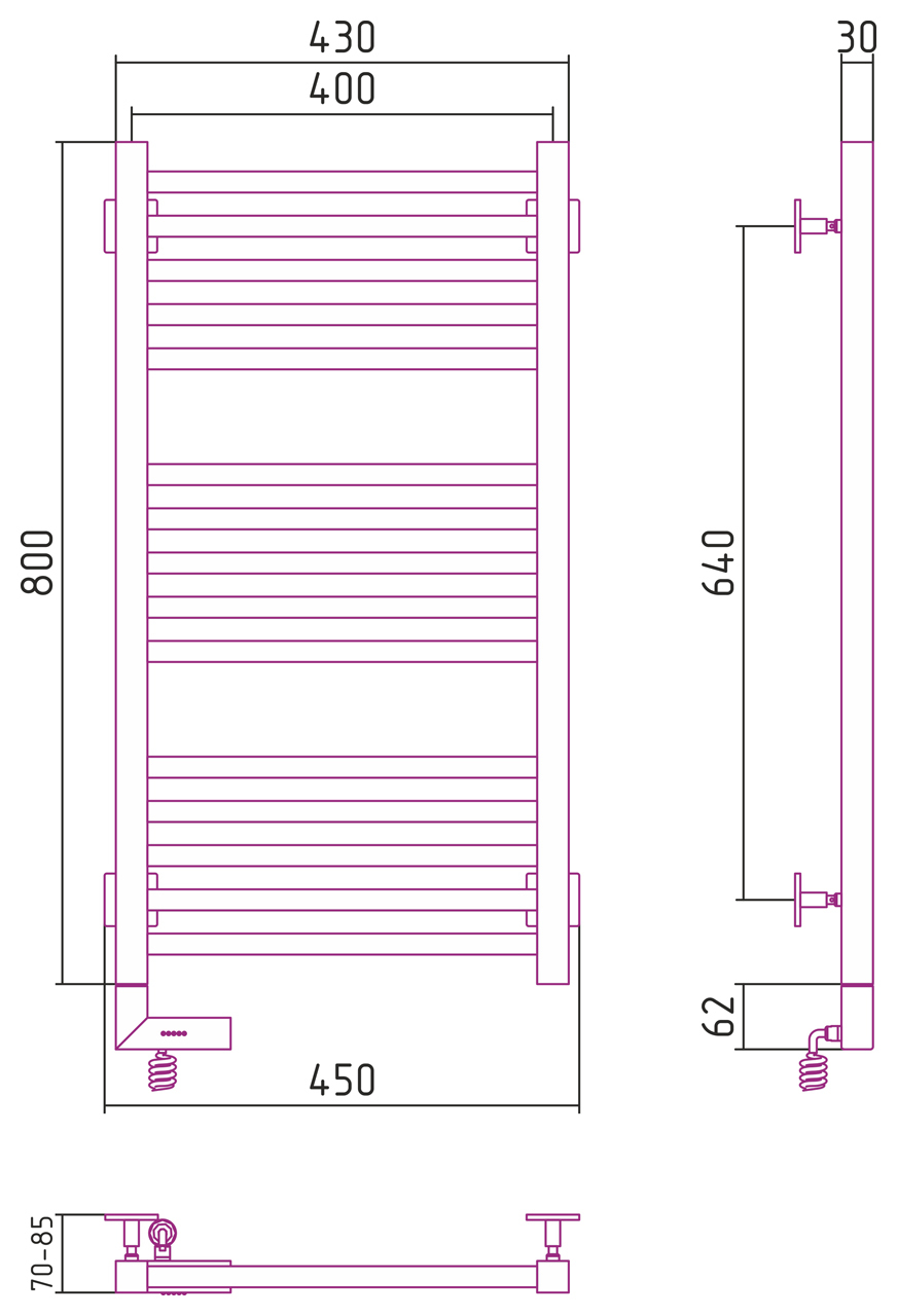 Внешние габариты (высота х ширина х глубина)(мм) : 862x450x70-85