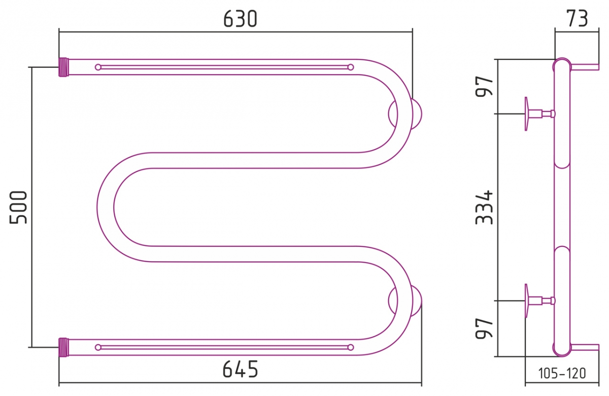 Полотенцесушитель водяной Стилье М-образный 500x650 + 2 полки
