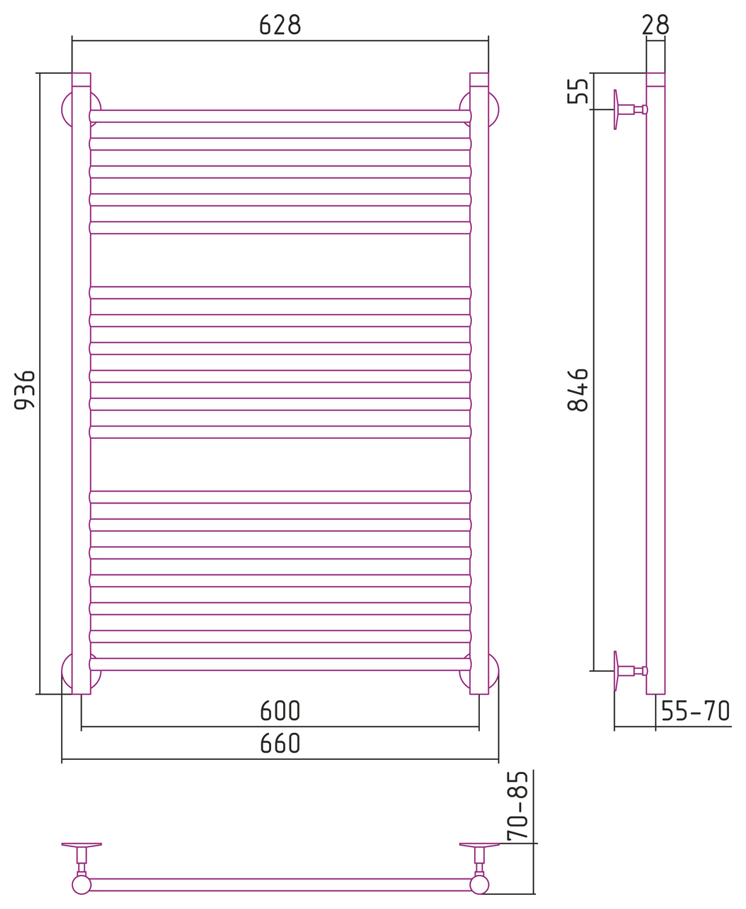 Полотенцесушитель водяной Стилье Универсал-53 1000x600