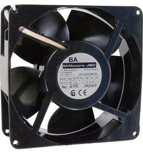 Корпус изготовлен из алюминия, лопасти вентилятора - из жаропрочного пластика (стеклонаполненного полиамиада). В двигателе используются радиальные шариковые подшипники закрытого типа, что гарантирует низкий уровень шума и безотказную работу вентилятора в течение 30 000 часов. Габариты: 138х138х62 мм.