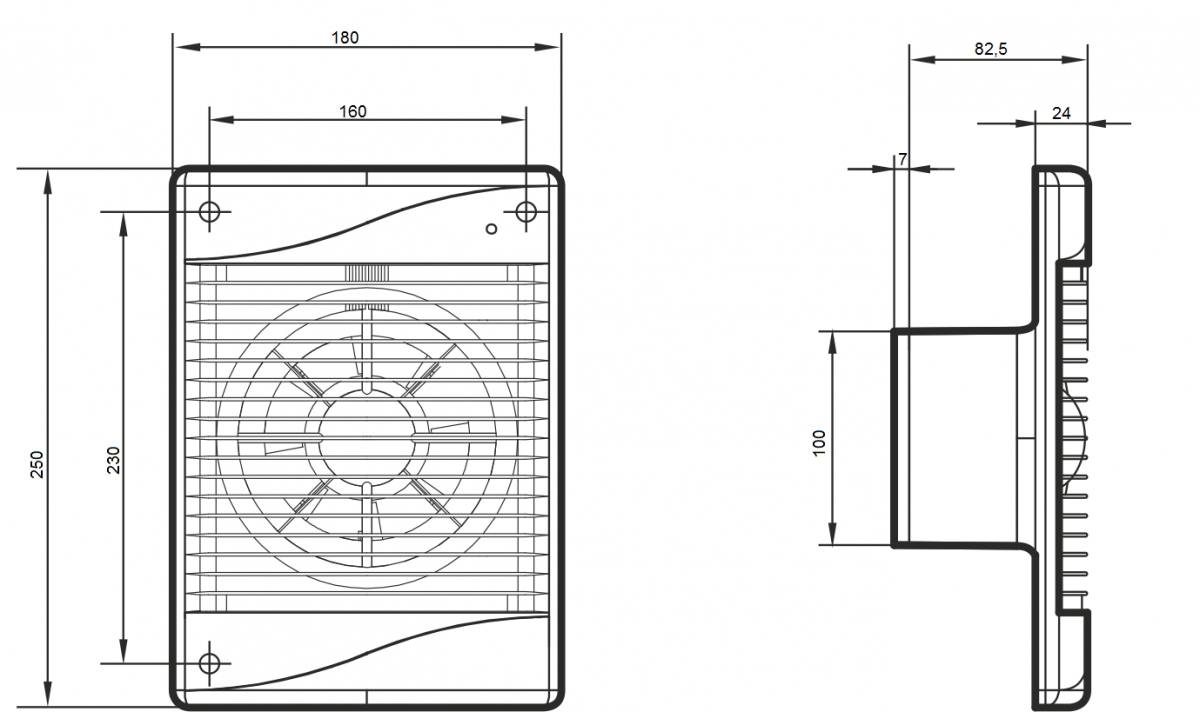Установочные размеры данной модели вентилятора позволяют закрыть вентиляционное отверстие 180*250мм, наиболее часто встречающееся в панельных домах;