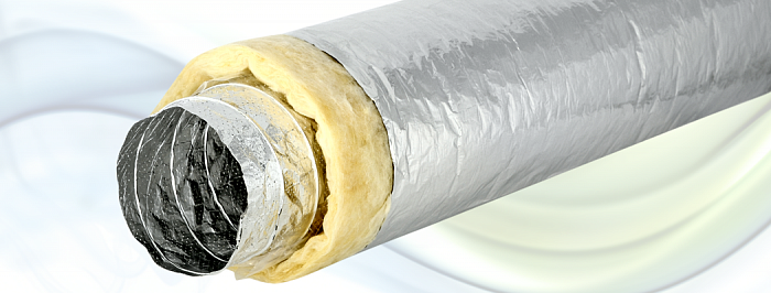 Воздуховоды серии SONODEC ®  DS — гибкие теплоизолированные и звукопоглощающие воздуховоды с основой из алюминиевой фольги с микроперфорацией и каркасом из стальной проволоки и теплоизолирован слоем стекловаты толщиной 25 мм, и снабженный наружной оболочкой из стеклоткани.