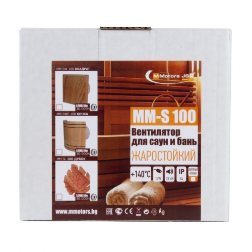 Высокотемпературный жаростойкий вентилятор Mmotors для бани и сауны мм-s 100 квадратный (дерево)